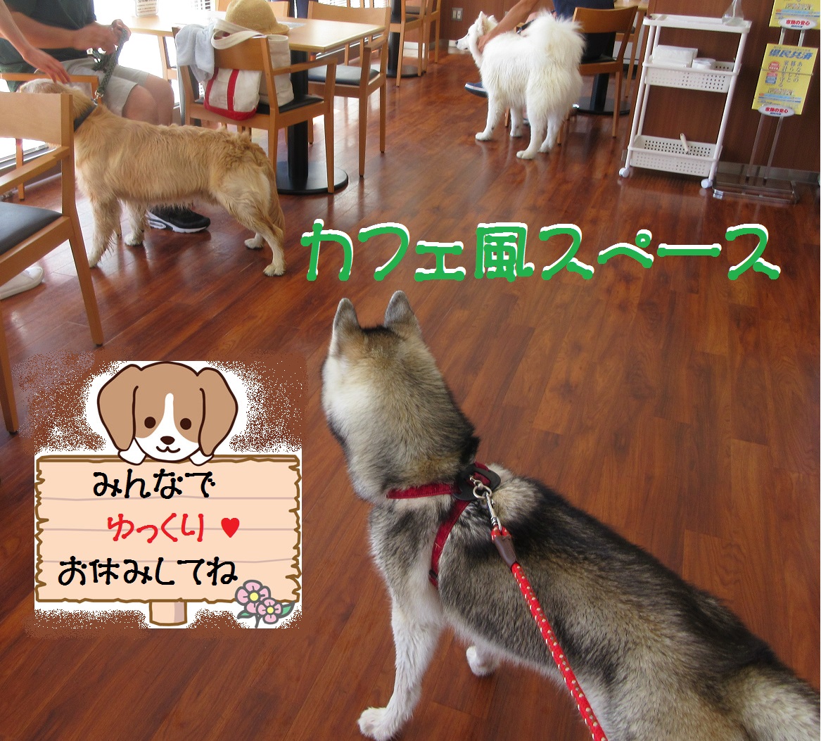 カフェ風スペースでは、ワンちゃんのオヤツや飼い主さんのランチなどもお持込みいただけますのでご利用ください。