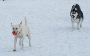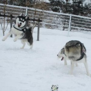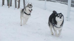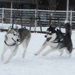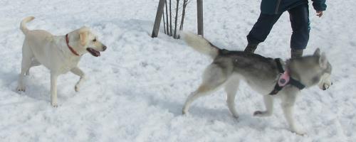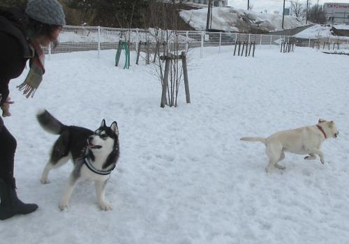 本当に雪が似合う!!ワンちゃんたちです♪おともだちと一緒で楽しさ倍増!!
