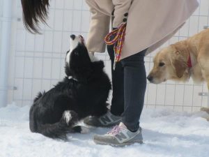 そんな残り少ない雪の季節を楽しみにしているワンちゃんたちが来館してくれましたよ!