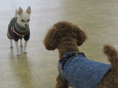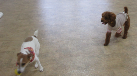 こんなお天気では、お散歩の替わりに遊びに来てくれるワンちゃんも多いですよ。