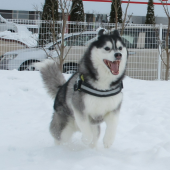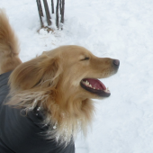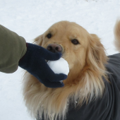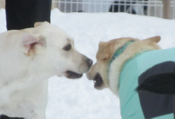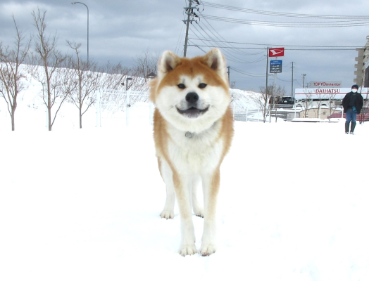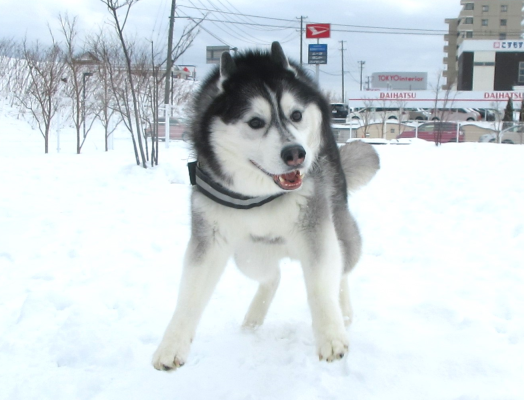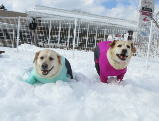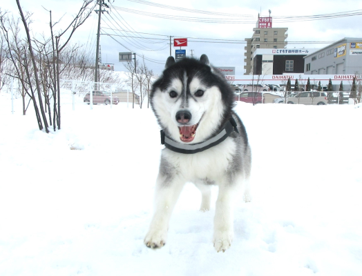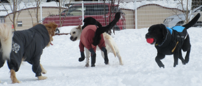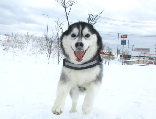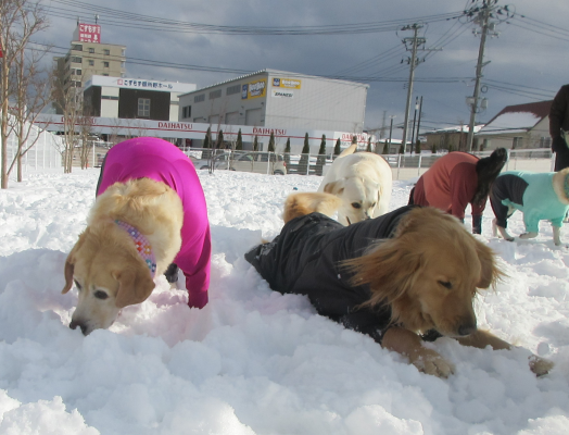 雪の上でわんちゃんたちの笑顔がキラキラ輝いています!