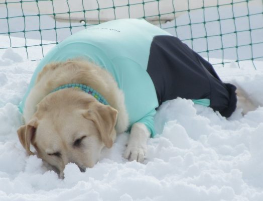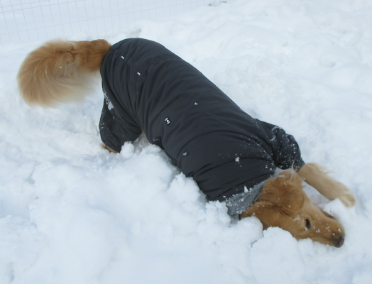 雪浴びを満喫しているおともだち。