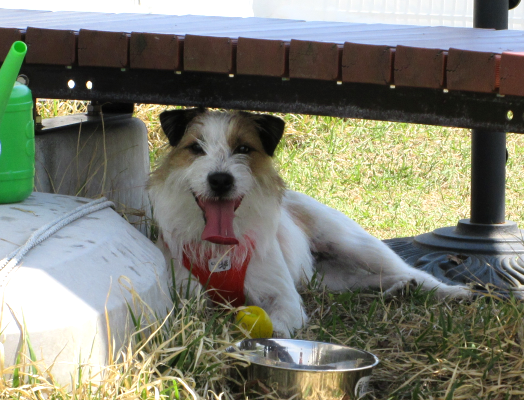 暑くて日陰で休憩中。
