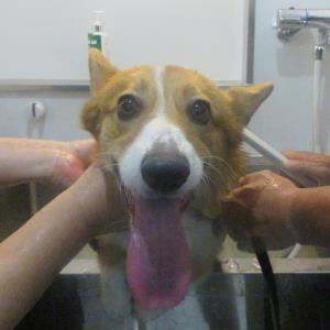 遊んだ後は飼い主さんにシャンプ~をしてもらって、