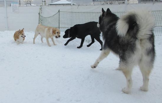 午後には!!雪の屋外ドッグランには大きなおともだちが続々!集合