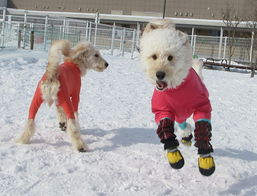 お外が大好きなワンちゃんたちは雪あそびができて嬉しそう💓