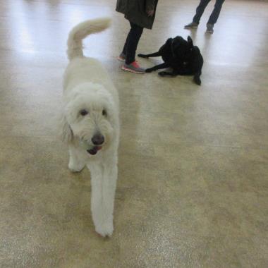 昨日の夜から降っていた雨の影響で、室内ドッグランへのご案内と