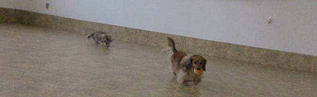 大好きな飼い主さんと室内ドッグランで楽しくおいかけっこ♪