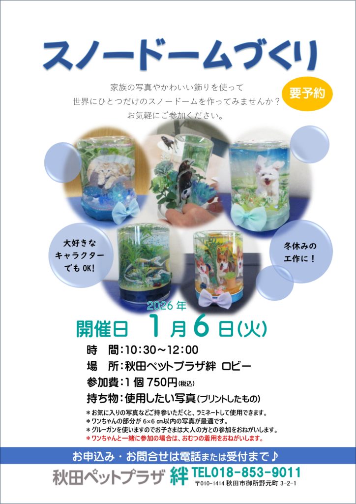 *ご予約は秋田ペットプラザ絆の会員様のみとなっております。