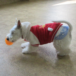秋田ペットプラザ絆の、オレンジ色のボールがお気に入り!