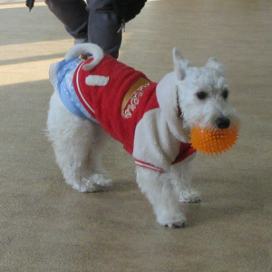 秋田ペットプラザ絆の、オレンジ色のボールがお気に入り!