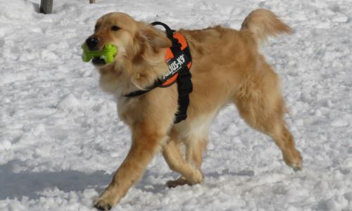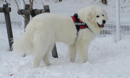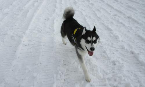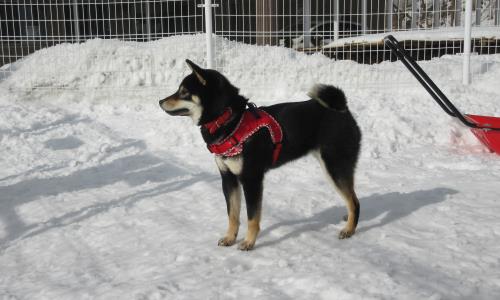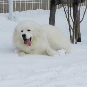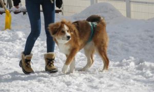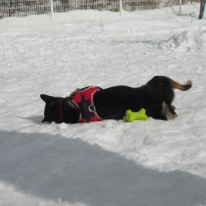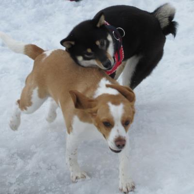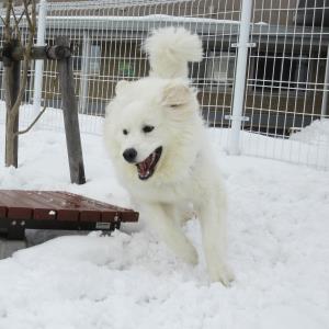 雪の屋外ドッグランは大きいワンちゃんを中心に大盛況!