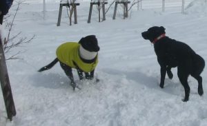 雪のドッグランが大好きなおともだちは、とってもパワフル☆雪の中を駆け抜けます!