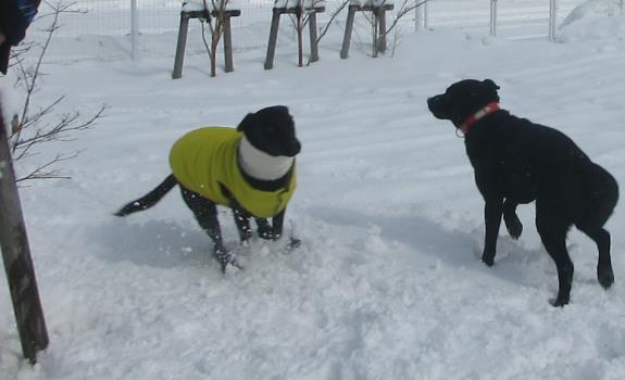 元気いっぱい(^^)/★可愛いおともだちも~雪のドッグランで大喜び♪