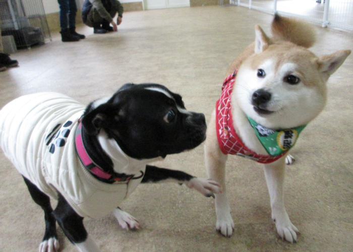 はじめましてのワンちゃんたちは一緒に走ってすぐに仲良しに♪ いいコンビだね!