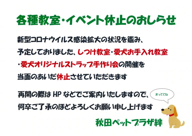 ~秋田ペットプラザ絆からのお知らせ~