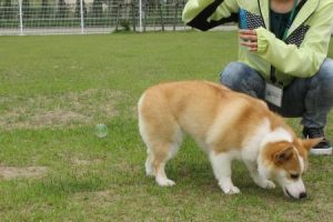 こちらの可愛いおともだちは!今日は【ワンちゃん用のシャボン玉】でとっても楽しそうに飼い主さんと一緒に遊んでくれましたよ(*^^*)