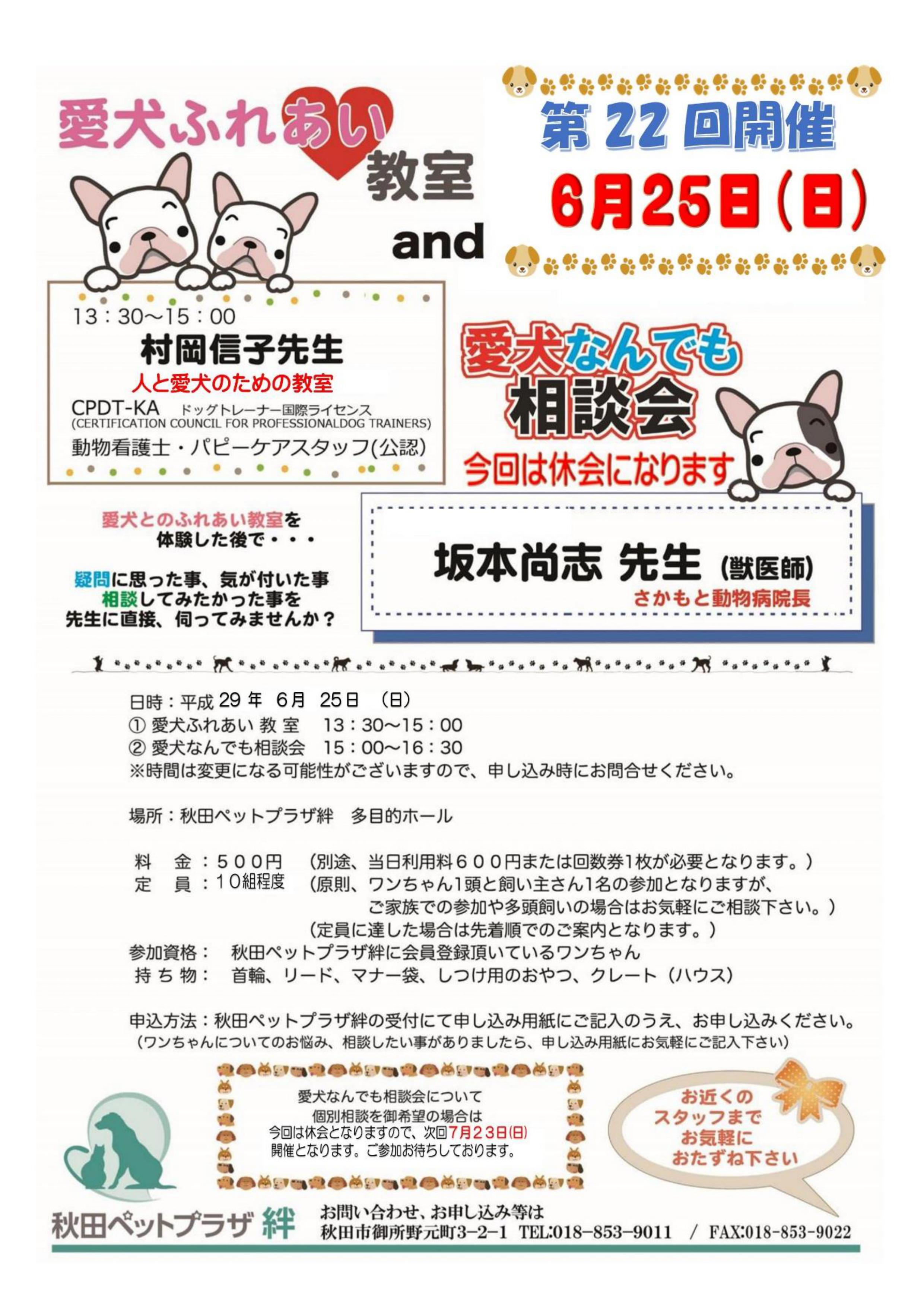 第22回【愛犬ふれあい教室&愛犬なんでも相談会】のおしらせです!