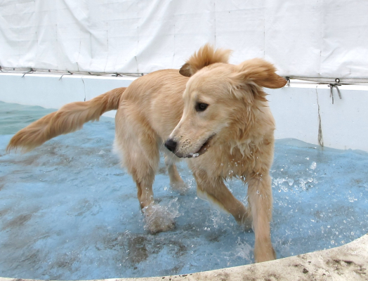 プール気持ちいい~!と満足そうなワンちゃん♪