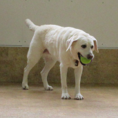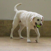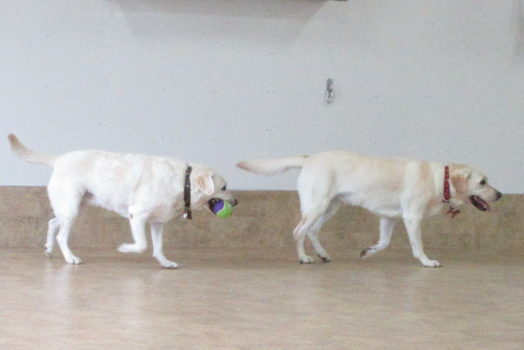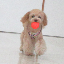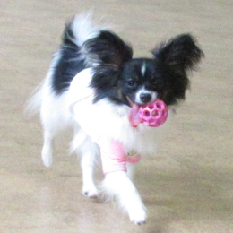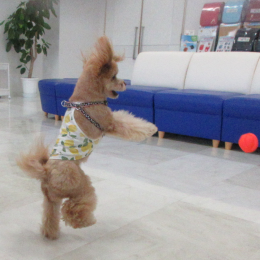 室内でボール遊びをしたワンちゃん