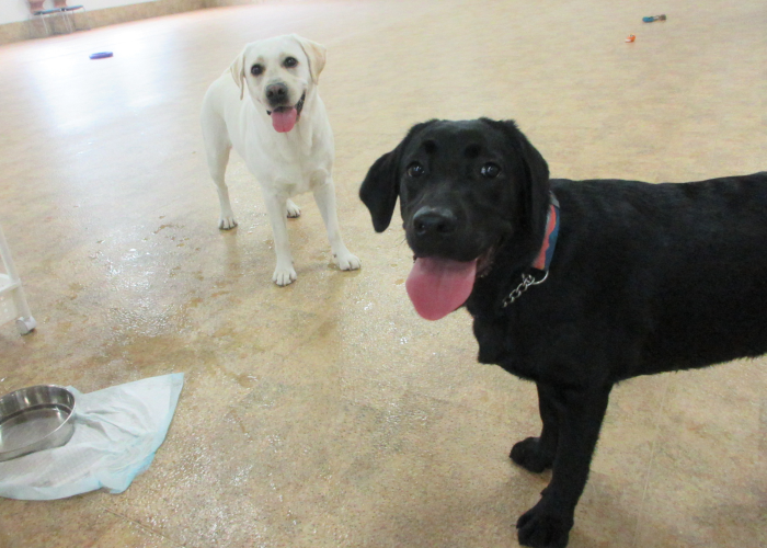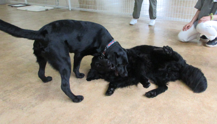 室内ドッグランで思いっきりかけっこを楽しんだワンちゃんたちの
