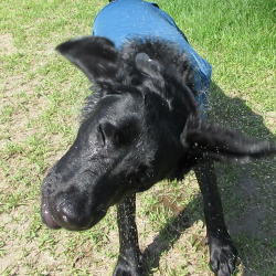 いつものフワフワわんちゃんもプールで涼みました。