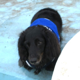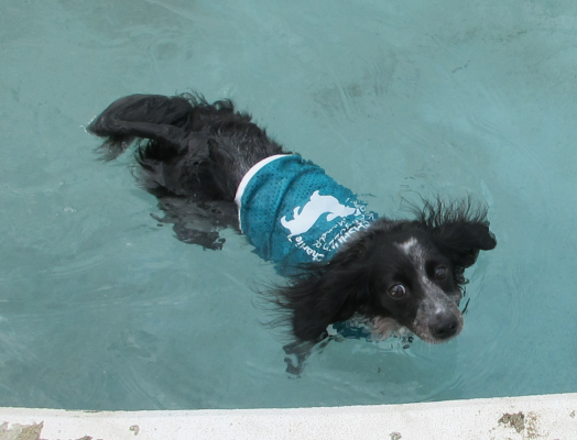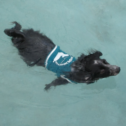 オシャレワンちゃんたちは涼しい時間にプール遊びです