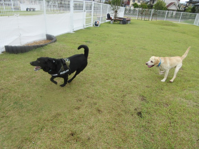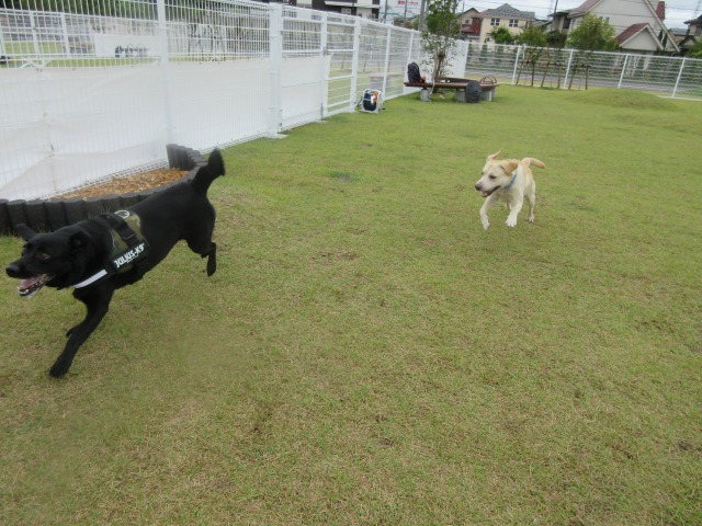 お昼前後には、ようやく雨が上がりましたが…屋外ドッグランの芝生の状態を見ながらのご案内になりましたが…