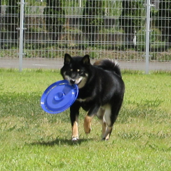 青いフリスビーがよく似合うおとこのこ。