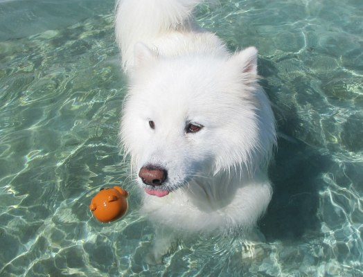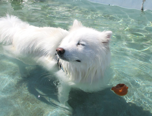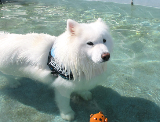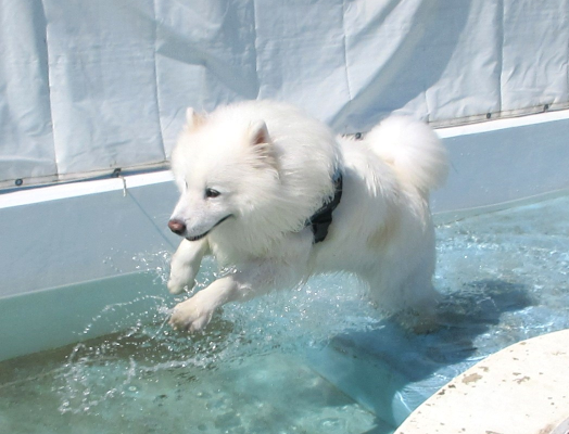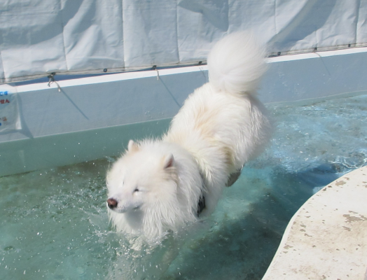 まっ白なモフモフわんこは朝のプールで涼みました☀