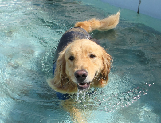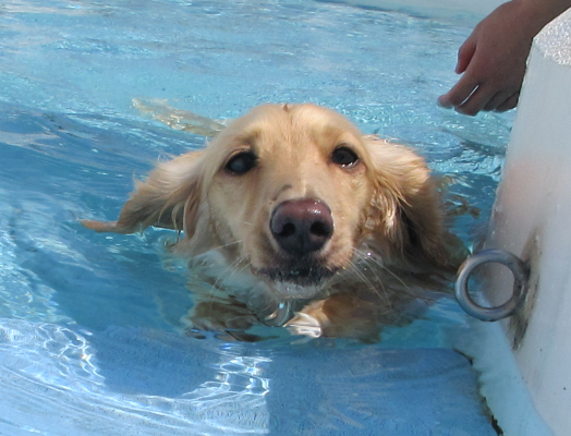プールで涼みながら遊ぶ、かしこいわんちゃんです!
