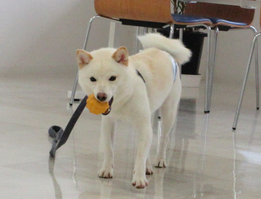 トリミングの前に、お気に入りのボールでたっぷり遊びました!