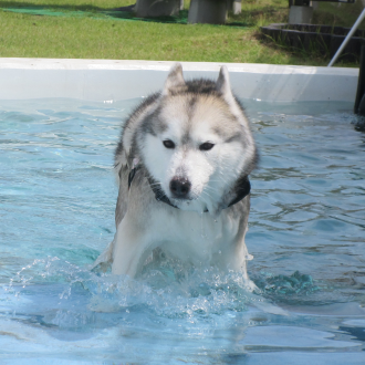 寒い国のワンちゃんはやっぱりプールが大好き
