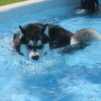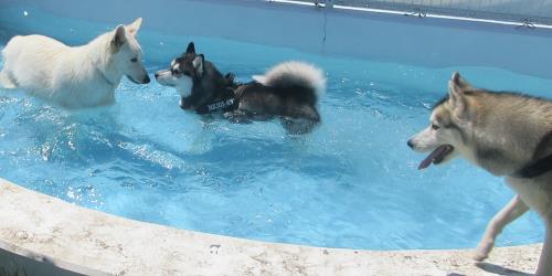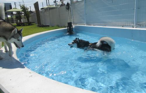 こちらのワンちゃんもプールにかけっこと大ハッスルです!