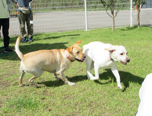 青空の下で元気いっぱいドッグランを楽しみました♪