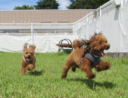 青空の下で元気いっぱいドッグランを楽しみました♪